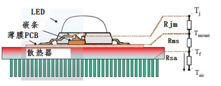 [page]圖3.LED到散熱器各個熱阻的示意圖