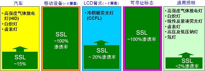 圖2.LED照明在各種應(yīng)用的滲透比例