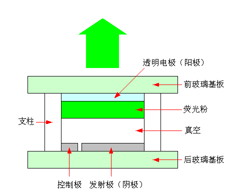 由于金屬電極是沿著同一塊玻璃基板排列,所以剛發(fā)射出來(lái)的電子是在玻璃基板表面?zhèn)鲗?dǎo)的,這是這種器件被命名為表面?zhèn)鲗?dǎo)電子發(fā)射顯示器的原因,這也是SED顯示器與其它場(chǎng)致發(fā)射顯示器的主要區(qū)別。SED電視目前的最大亮點(diǎn)是畫(huà)質(zhì)好,它的解析度與液晶電視基本相同,而灰度表現(xiàn)力,可視角度,色域范圍,動(dòng)態(tài)畫(huà)面表現(xiàn),暗部細(xì)節(jié)表現(xiàn)力等,均可達(dá)到高級(jí)的CRT電視水平。由于SED生產(chǎn)技術(shù)基本上被東芝公司壟斷,因此,SED顯示器在未來(lái)十幾年內(nèi)不可能發(fā)展成為主流產(chǎn)品。圖7是SED顯示器的工作原理。