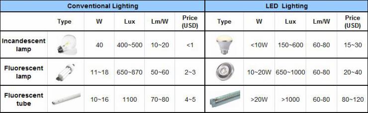 盡管白熾燈泡退出市場(chǎng)后,給予LED燈泡很大的成長(zhǎng)空間。但是LED照明面臨較大的問題就是要與傳統(tǒng)的螢光燈泡競(jìng)爭(zhēng)。現(xiàn)階段無論是發(fā)光效率或是零售價(jià)格上,LED燈泡還是很難與傳統(tǒng)的螢光燈泡挑戰(zhàn)。因此在行銷上,還是以使用壽命、節(jié)省電費(fèi)、不含汞等議題來作為主要的訴求。
