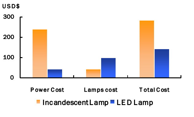 以7W的 LED燈泡為例,2009年初,一顆7W LED燈泡成本將近15美元到20美元,零售價(jià)格多半在50美元以上。不過隨著LED成本的降低,目前7W LED燈泡成本下降至12元美金左右。零售價(jià)格也壓低到30美元附近。而隨著LED燈泡成本下降,LED燈泡替代白熾燈泡的優(yōu)勢(shì)越趨明顯。