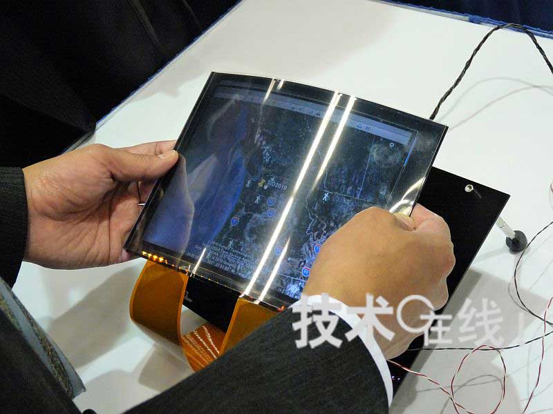 東芝開發(fā)出了可通過彎曲顯示器來放大或縮小顯示圖像的柔性液晶面板,并在全球最大的顯示器國際會議“SID 2010”上進(jìn)行了發(fā)布(論文編號:54.4L)。在AUTHOR INTERVIEWS上,東芝向觀眾演示了通過實(shí)際彎曲液晶面板,來放大或縮小畫面上顯示的“Google Earth”航攝照片。這種利用柔性顯示器特點(diǎn)的直觀操作,吸引了許多技術(shù)人員的關(guān)注。