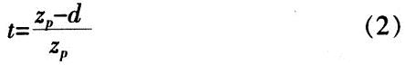 左視點(diǎn)Leye和右視點(diǎn)Reye均位于X軸上,兩視點(diǎn)間的距離為e,兩視點(diǎn)連線中心為坐標(biāo)原點(diǎn),則左視點(diǎn)的坐標(biāo)為(-e/2,0,0),右視點(diǎn)的坐標(biāo)為(+e/2,0,0)。投影平面平行于XY平面,到左右視點(diǎn)的距離均為d。三維空間中一點(diǎn)P(xp,yp,zp)在左視點(diǎn)投影中的坐標(biāo)為(xl,yl,zl),在右視點(diǎn)投影中的坐標(biāo)為(xr,yr,zr),則zl=zr=d。點(diǎn)P(xp,yp,zp)和Reye投影線的參數(shù)方程為: