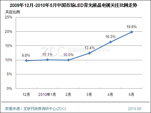(圖)2009年12月-2010年5月中國市場LED背光液晶電視關(guān)注比例走勢