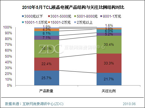 (圖)2010年5月TCl液晶電視產(chǎn)品結(jié)構(gòu)與關(guān)注比例結(jié)構(gòu)對比