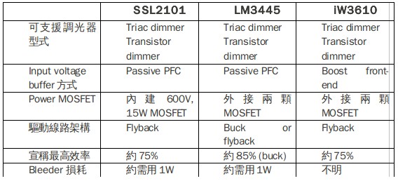 表二、市面上可見(jiàn)的TriacDimmableLEDLightingDriverIC