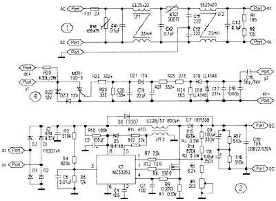 MC33262是一款可靠且成本低廉的功率因數(shù)校正芯片,其應(yīng)用電路如圖2所示。市電經(jīng)電源濾波器和整流器得到脈動直流電。電流通過啟動電阻R10向C2充電至10V時,IC1開始工作。整流后的直流脈動電壓在R5的分壓作為取樣信號經(jīng)IC1的③腳輸入乘法器。