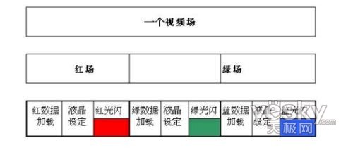 想要直接用RGB的LED來(lái)取代濾色片看上去好像很簡(jiǎn)單,其實(shí)是不可能的。因?yàn)闉V色片是把每一個(gè)像素都分成三種不同顏色的子像素,如果直接用三種顏色的LED來(lái)取代濾色片,就必須采用小到和子像素尺寸一樣大的LED來(lái)照射每一個(gè)子像素,才不會(huì)使紅光照到綠光的子像素上。這樣,LED的個(gè)數(shù)就要幾百萬(wàn)個(gè)之多。為維持像素?cái)?shù)不變,唯一的方法是重復(fù)使用這些像素,也就是采用時(shí)分復(fù)用制。這樣只要順序地發(fā)射出紅光、綠光、藍(lán)光,同時(shí)控制每個(gè)像素的薄膜晶體管(TFT),使其相應(yīng)地按照該像素在這種顏色時(shí)所應(yīng)當(dāng)具有的的強(qiáng)度來(lái)開啟液晶光閥。但是,要順序地發(fā)出紅、綠、藍(lán)三種顏色,并能形成一個(gè)彩色的視頻圖象,就必須利用人眼的視覺殘留作用。只要這三種顏色順序重復(fù)的周期小于人眼的視覺殘留時(shí)間,就可以在人們的大腦中形成一個(gè)彩色的圖象。視覺殘留時(shí)間實(shí)際上就是電視的場(chǎng)頻周期,在PAL制中為五十分之一秒。這也就要求在五十分之一秒的時(shí)間內(nèi)必須完成紅、綠、藍(lán)三個(gè)圖象的顯示。因此,這種方式被稱為“場(chǎng)順序”體制,也有人稱之為“色順序”體制。