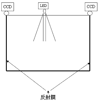 CCD光掃描原理是:在顯示區(qū)域的一邊設(shè)置兩個固定距離的CCD線陣探測器和紅外發(fā)射器,對準(zhǔn)顯示區(qū)域。在顯示區(qū)域的另外三邊設(shè)置可以反射光線的反射膜,在沒有物體阻擋時,線陣CCD檢測到的是一條完整的光帶。當(dāng)有物體在顯示區(qū)域中擋住光線傳播路徑時,在線陣CCD檢測到的光帶中會出現(xiàn)無反光區(qū)域,分布在兩個角的CCD分別檢測到的遮擋區(qū)域反應(yīng)在線陣CCD的對應(yīng)區(qū)域,根據(jù)對應(yīng)的區(qū)域計(jì)算出物體在顯示區(qū)域的位置,是一種交叉點(diǎn)測試定位方式。