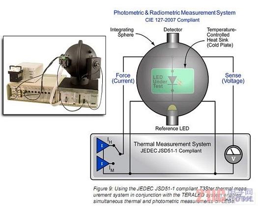當(dāng)TERALED以單機(jī)模式使用時(shí),它可以完成光度測量。當(dāng)結(jié)合T3Ster系統(tǒng)時(shí)可以進(jìn)行熱和光度測量。圖9是TERALED和T3Ster系統(tǒng)一起使用的簡圖。