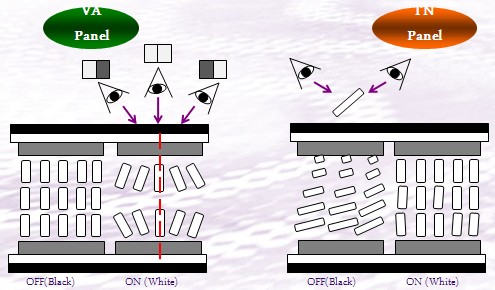 在TV產(chǎn)品中已經(jīng)得到大范圍應(yīng)用的VA面板,以其能與IPS屏相抗衡的178°超廣視角聞名。此次明基使用的AMVA面板來源于MVA面板,這種技術(shù)是垂直取向陣營的代表,最早由富士通公司開發(fā),并且由此衍生出了Super-MVA(奇美采用)和MVA-Premium(富士通、友達(dá)光電采用,近期SHARP合并富士通的LCD部門后也獲得該技術(shù))。在MVA技術(shù)中,其液晶分子的長軸在未加電時不像傳統(tǒng)TN模式那樣平行于屏幕,而是垂直于屏幕,并且每個像素都是由多個這種垂直取向的液晶分子疇組成。當(dāng)電壓加到液晶上時,液晶分子向不同的方向偏轉(zhuǎn),這樣從不同的角度觀察屏幕都可以獲得相應(yīng)方向的補(bǔ)償,也就改善了可視角度。