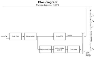 LED正越來(lái)越廣泛應(yīng)用于照明改造、工業(yè)照明、商業(yè)照明、街道照明以及其它眾多領(lǐng)域,其效率以及使用壽命已經(jīng)得以證實(shí),為提供更高可靠性,它需要一個(gè)良好的電源以滿足其需求。我們的第一個(gè)方案是由兩級(jí)構(gòu)成:一個(gè)前端PFC與一個(gè)LM3445 LED驅(qū)動(dòng)器。