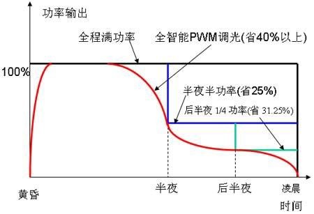 一般來說,路燈到半夜以后就沒有什么用處了,所以通常的做法是12點以后關(guān)燈或者開一半亮度。但是最合理的做法是根據(jù)交通流量來控制路燈的亮度,甚至是完全自適應(yīng)地控制亮度。圖10就是根據(jù)當?shù)亟煌髁康慕y(tǒng)計值來調(diào)節(jié)路燈亮度的一個例子。