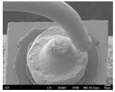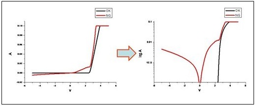 2. 變色:這類失效是指LED不點亮的狀況下,外觀顏色或膠材透明度與新品不同,用肉眼即可看出,通常在產品使用一段時間或在做完可靠度試驗后發(fā)生。一般說來,變色區(qū)域大致可區(qū)分為發(fā)生在導線架或封裝膠材兩類,若發(fā)生在導線架,通常是因為表面與環(huán)境中的化學物質發(fā)生反應,如氧化或硫化,要分辨屬于哪種需仰賴成份分析,可使用的儀器包含有EDS(Energy Dispersive X-ray Spectroscope)、XPS(X-ray Photoelectron Spectrometer)、AES(Augur Electron Spectroscope)等等。若是封裝用的膠材發(fā)生變色,則屬于高分子材料的劣化現象,如環(huán)氧樹脂易受高溫或是紫外光影響而變黃,因此白光LED多改采矽膠取代之。分析此類失效應特別留意,因膠材本身有一定的透明度,有時變色的導線架因被膠材蓋住而誤判為膠材變色,引導至錯誤的改善方向。