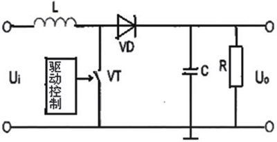 當VT截止時,電感L中的電流不能突變,它所產(chǎn)生的感應電勢阻止電流減小,電勢的極性左負右正。二極管VD導通,電感中儲存的能量通過二極管VD流入電容C,并供給負載。