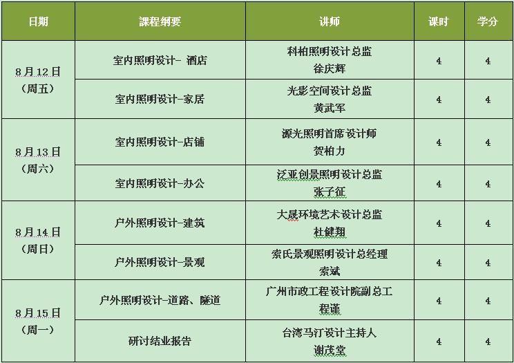 城市建設(shè)的發(fā)展,人居環(huán)境的改善,要求設(shè)計(jì)師通過科學(xué)的照明設(shè)計(jì)來達(dá)到各種照明環(huán)境的特定要求,廣東光亞照明研究院聯(lián)合CLDA華人照明設(shè)計(jì)師聯(lián)合會,繼《照明設(shè)計(jì)基礎(chǔ)班》成功舉辦后,于2011年8月12-15日,開展為期四天的《照明設(shè)計(jì)專業(yè)培訓(xùn)班》,旨在培養(yǎng)對室內(nèi)外光環(huán)境進(jìn)行綜合設(shè)計(jì)的人才,提高照明設(shè)計(jì)人員的專業(yè)素質(zhì)。