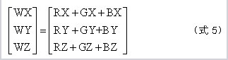 而白色的色坐標(biāo)Wx,Wy以及白色亮度值WY都可以通過RGB三色的XYZ三刺激值的疊加計(jì)算得到: