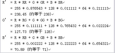假設(shè)某像素的轉(zhuǎn)換系數(shù)矩陣如下: