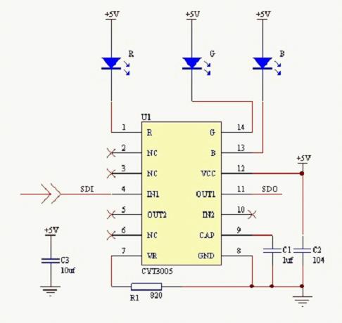 圖一 CYT3005單線傳輸驅(qū)動全彩LED燈[page]