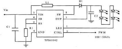 - 使用TI公司的TPS61042驅(qū)動4個LED燈管