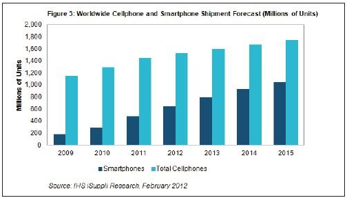 IHS公司的資深首席分析師Steve Mather 認為,2015年全球手機銷量將達17億部,其中10億部將是智能手機。這意味著2015年超過70億的人口中,14%將購買智能手機,如圖3所示。這個規(guī)模十分驚人,全球科技供應鏈紛紛調(diào)整方向,脫離電腦產(chǎn)業(yè),投身于智能手機市場。時間框架:三年。
