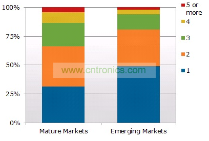 該報(bào)告還發(fā)現(xiàn),在成熟市場家庭平均擁有2.4臺電視,而在新興市場平均每戶為1.8臺。成熟市場中,超過三分之二的家庭有一臺以上電視,但在新興市場近一半的家庭只有一臺電視。鑒于平板電視持續(xù)推出新機(jī)種、價格益加實(shí)惠、以及消費(fèi)者對高品質(zhì)、大屏幕和高清晰度電視的消費(fèi)欲望,和成熟市場的消費(fèi)者一樣,越來越多的新興市場消費(fèi)者購買平板電視(主要是液晶電視)來汰換他們現(xiàn)有的舊款式電視。