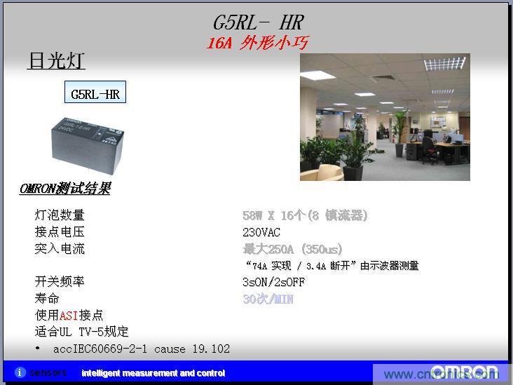 我們實(shí)際客戶應(yīng)用的案例,我們?cè)谕茝V客戶的過(guò)程中,形成了一些實(shí)際的應(yīng)用案例,在實(shí)現(xiàn)照明系統(tǒng)和家電自動(dòng)化的領(lǐng)域,在節(jié)能領(lǐng)域、自動(dòng)化的領(lǐng)域現(xiàn)在是越來(lái)越高了,目前歐姆龍的繼電器在日光燈這塊直接的應(yīng)用可以運(yùn)用繼電器作為啟用的電阻。繼電器也就是高級(jí)一點(diǎn)的器開(kāi)關(guān)。在模塊上面,也是用來(lái)控制鎮(zhèn)流器的。在另外一個(gè)人體、物體探照這塊,我們也會(huì)有MEMS非接觸系統(tǒng)的微溫度傳感器。按照設(shè)計(jì)的過(guò)程中,就是在信號(hào)繼電器和MEMS非接觸溫度傳感器繼電器上都有應(yīng)用,但是還沒(méi)有成功案例,所以上面就打了問(wèn)號(hào)。