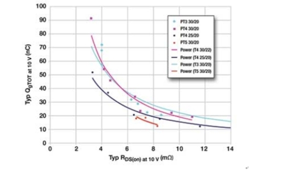 RDS(ON)直接與傳導(dǎo)損耗有關(guān),而Qg直接與開(kāi)關(guān)損耗有關(guān)。FOM越小,性能越好。