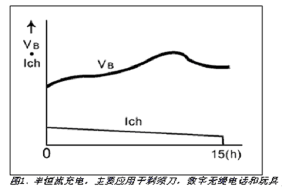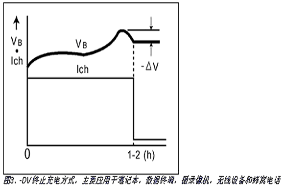 在0.05°C至大于1°C的范圍內(nèi)對(duì)NiCd電池恒流充電。一些低成本充電器使用絕對(duì)溫度終止充電。雖然簡(jiǎn)單、成本低,但這種充電終止方法不精確。更好的方法是通過(guò)檢測(cè)電池充滿時(shí)的電壓跌落終止充電。對(duì)于充電速率為0.5°C或更高的NiCd電池,- V方法是最有效的。- V充電終止檢測(cè)應(yīng)與電池溫度檢測(cè)相結(jié)合,因?yàn)槔匣姵睾筒黄ヅ潆姵乜赡軠p少 V。