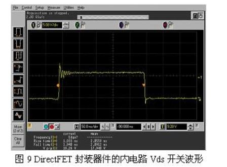 圖8和圖9示出了封裝寄生效應(yīng)對(duì)SO-8 MOSFET和DirectFET VRM的開(kāi)關(guān)性能的影響。