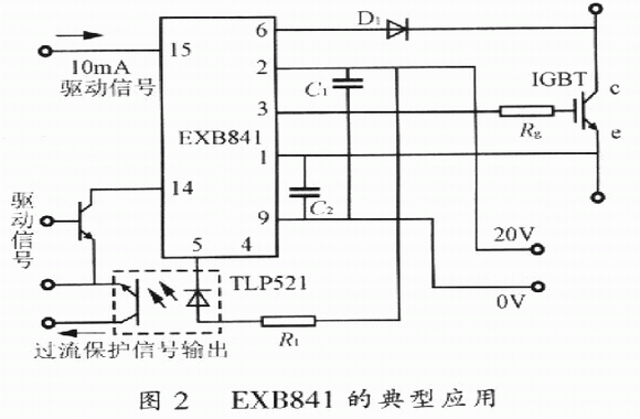 (2)EXB84l外周電路簡(jiǎn)單,僅需單電源供電,是最早進(jìn)入我國(guó)市場(chǎng)的ICBT驅(qū)動(dòng)模塊,技術(shù)成熟,應(yīng)用廣泛;
