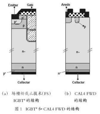 圖1(a)顯示了基于英飛凌溝槽柵場(chǎng)截止(FS)IGBT4 技術(shù)和賽米控CAL4 續(xù)流二極管的新一代芯片的基本結(jié)構(gòu)。