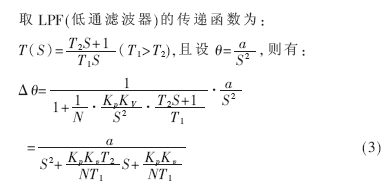 在壓控振蕩器中,因頻率可以是變量,故它們不是簡單的乘以時間的關(guān)系,而是對時間的積分。除壓控振蕩器的積分作用外,濾波器環(huán)節(jié)中還需有積分項,這樣才可以使ud的直流成分穩(wěn)定為0,從而θ-θ0的差可以穩(wěn)定為π/2。uc的值由濾波器中的積分項保持作用維持。另外,濾波器中若只有積分項,將出現(xiàn)等幅振蕩,故需要增加一個比例項。其數(shù)學(xué)模型如圖3所示。