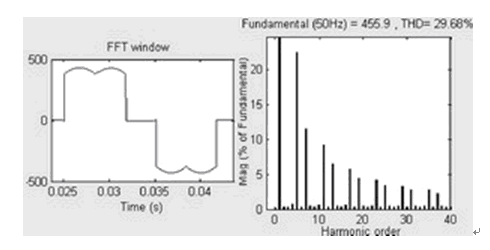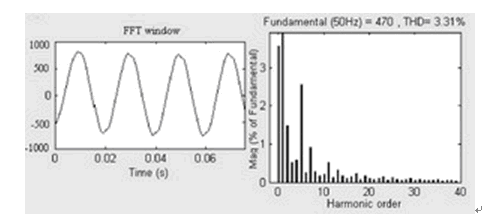 圖3 未加載有源濾波器時(shí)的電流波形和諧波