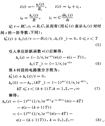 由于電子開關(guān)周期性切換,RC電路對外電路的影響表現(xiàn)為:下一時段的輸出電壓初值是上一時段末時刻輸出電壓值乘(-1),即: