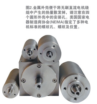 外殼散熱:對(duì)于特定的電機(jī)尺寸和扭矩負(fù)載,無刷直流電機(jī)需要在比其它兩種電機(jī)更低的內(nèi)部溫度下工作。無刷直流電機(jī)的外殼溫度通常與電機(jī)繞組溫度直接相關(guān),由于有刷直流電機(jī)具有較高的內(nèi)部熱阻抗,其穩(wěn)定狀態(tài)的外殼溫度通常比繞組溫度低得多(但這會(huì)造成轉(zhuǎn)子發(fā)熱);混合式步進(jìn)電機(jī)經(jīng)常會(huì)發(fā)熱,設(shè)計(jì)師應(yīng)該設(shè)計(jì)好產(chǎn)品,防止人員接觸發(fā)熱的電機(jī)。