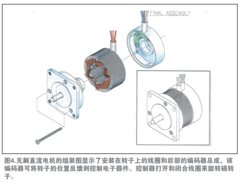 傳統(tǒng)的有刷換向直流電機(jī)使用“電刷”——通常由含有某些金屬成份的固體石墨制成,電機(jī)轉(zhuǎn)子中有一個(gè)換向器,它用金屬棒連接到每個(gè)線圈上,轉(zhuǎn)子旋轉(zhuǎn)時(shí),電刷將電流傳送到換向器上,換向器將電流從一組繞組切換到另一組。無刷直流電機(jī)依靠軸位置傳感器和外部開關(guān)電路共同產(chǎn)生的開關(guān)電流來工作。