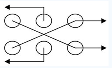 步進電機工作在四相八拍模式(即正轉的輸入信號為1000→1100→0100→0110→0010→0011→0001→1001→1000),對應每個步進電機要有四個信號輸入端,理論上向端口輸出信號可以控制兩個步進電機的工作。寄存器循環(huán)移位奇偶位分別作兩個步進電機的驅動端的做法,其思想如下: