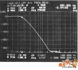 圖4是同一常數(shù)構(gòu)成的LPF的衰減特性,它是-18dB/oct、fc=690Hz的特性,對于截斷頻率fc,約下降69%(0.69fc),將此取為1kHz時,電阻R應(yīng)設(shè)置為:R=0.69×15.92×103≈11k(Ω)