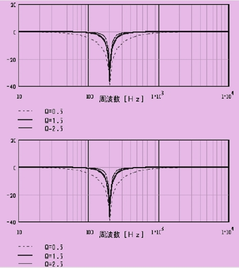 陷波濾波器又稱為帶阻濾波器,可對(duì)任意頻率信號(hào)有效地阻斷,甚至可使諧振點(diǎn)的增益降到零。當(dāng)諧振峰值高而頻率帶寬窄時(shí)適用。通過改變品質(zhì)因數(shù)(q值)使衰減特性變化急劇或平緩。頻率設(shè)置范圍從50~1500hz,q值設(shè)置范圍從0.5~2.5(默認(rèn)值1.5)。圖2示出了陷波濾波器設(shè)置圖。