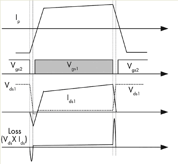 圖2. 不對(duì)稱半橋轉(zhuǎn)換器的詳細(xì)開(kāi)關(guān)波形