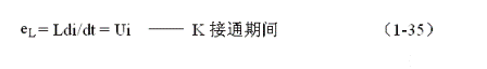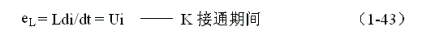式中負(fù)號(hào)表示反電動(dòng)勢(shì)eL的極性與(1-43)式相反,即:K接通與關(guān)斷時(shí)電感的反電動(dòng)勢(shì)的極性正好相反。對(duì)(1-46)式進(jìn)行積分得: