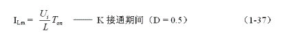 這里特別指出:(1-50)和(1-51)式的結(jié)果,雖然是以開(kāi)關(guān)電源工作于臨界連續(xù)電流狀態(tài)的條件求得,但對(duì)于開(kāi)關(guān)電源工作于連續(xù)電流狀態(tài)或斷流狀態(tài)同樣成立,因?yàn)?,輸出電壓Uo只取其峰值電壓Up,而不是取其平均值。