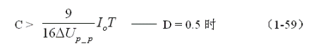 同理,(1-58)和(1-59)式的計(jì)算結(jié)果,只給出了計(jì)算并聯(lián)式開(kāi)關(guān)電源儲(chǔ)能濾波電容C的中間值,或平均值,對(duì)于極端情況可以在平均值的計(jì)算結(jié)果上再乘以一個(gè)大于1的系數(shù)。