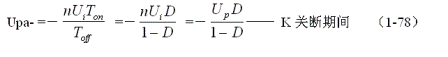 在變壓器開關(guān)電源中,正激式輸出電壓的計(jì)算比較簡(jiǎn)單,而反激式輸出電壓的計(jì)算相對(duì)來說很復(fù)雜,因此,如果沒有十分必要,最好采用半波平均值的概念和(1-75)式,通過計(jì)算正激電壓的半波平均值,來推算反激式輸出電壓的半波平均值。因此,(1-75)式主要還是用來計(jì)算反激式輸出電壓的半波平均值的。