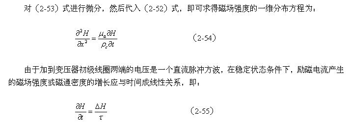 當(dāng)有一個(gè)直流脈沖電壓加到變壓器初級(jí)線圈的兩端時(shí),在變壓器初級(jí)線圈中就就有勵(lì)磁電流通過(guò),并在變壓器鐵芯中產(chǎn)生磁場(chǎng)強(qiáng)度H和磁通密度B,兩者由下式?jīng)Q定: