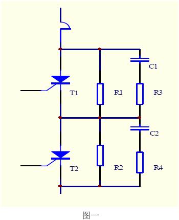 通常使用兩只晶閘管串聯(lián)工作以解決單只晶閘管耐壓不足的問(wèn)題。這就需要解決晶閘管的工作電壓平均分配問(wèn)題,包括靜態(tài)均壓與動(dòng)態(tài)均壓。靜態(tài)均壓可采用無(wú)感電阻串聯(lián)分壓的方式解決;動(dòng)態(tài)均壓比較復(fù)雜,這是因?yàn)椋涸?shù)dv/dt的差異以及反向恢復(fù)時(shí)間的差異導(dǎo)致開(kāi)通與關(guān)斷過(guò)程中元件承受的電壓分配不均,極端情況可使支路電壓全部加在一只晶閘管上。