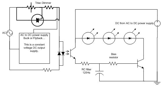 高亮度LED是傳統(tǒng)白熾燈的一種理想替代方案,因?yàn)榍罢叩膲勖托识急群笳吒叩枚?,而且不同于緊湊型熒光燈泡,這些LED能夠在低溫下工作。然而,和冷陰極熒光燈(CCFL)燈泡一樣,高亮度LED也未能擺脫眾多家庭和應(yīng)用中常見的三端雙向可控硅(TRIAC)調(diào)光器。本文將介紹一種具成本優(yōu)勢(shì)的高亮度LED(HBLED)調(diào)光方法。