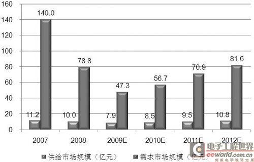 2007年-2012年中國半導體設備市場規(guī)模及預測