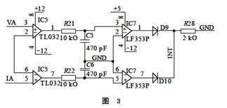 信號(hào)檢測(cè)板部分標(biāo)準(zhǔn)電壓和電流的有效值轉(zhuǎn)換電路如圖2所示。